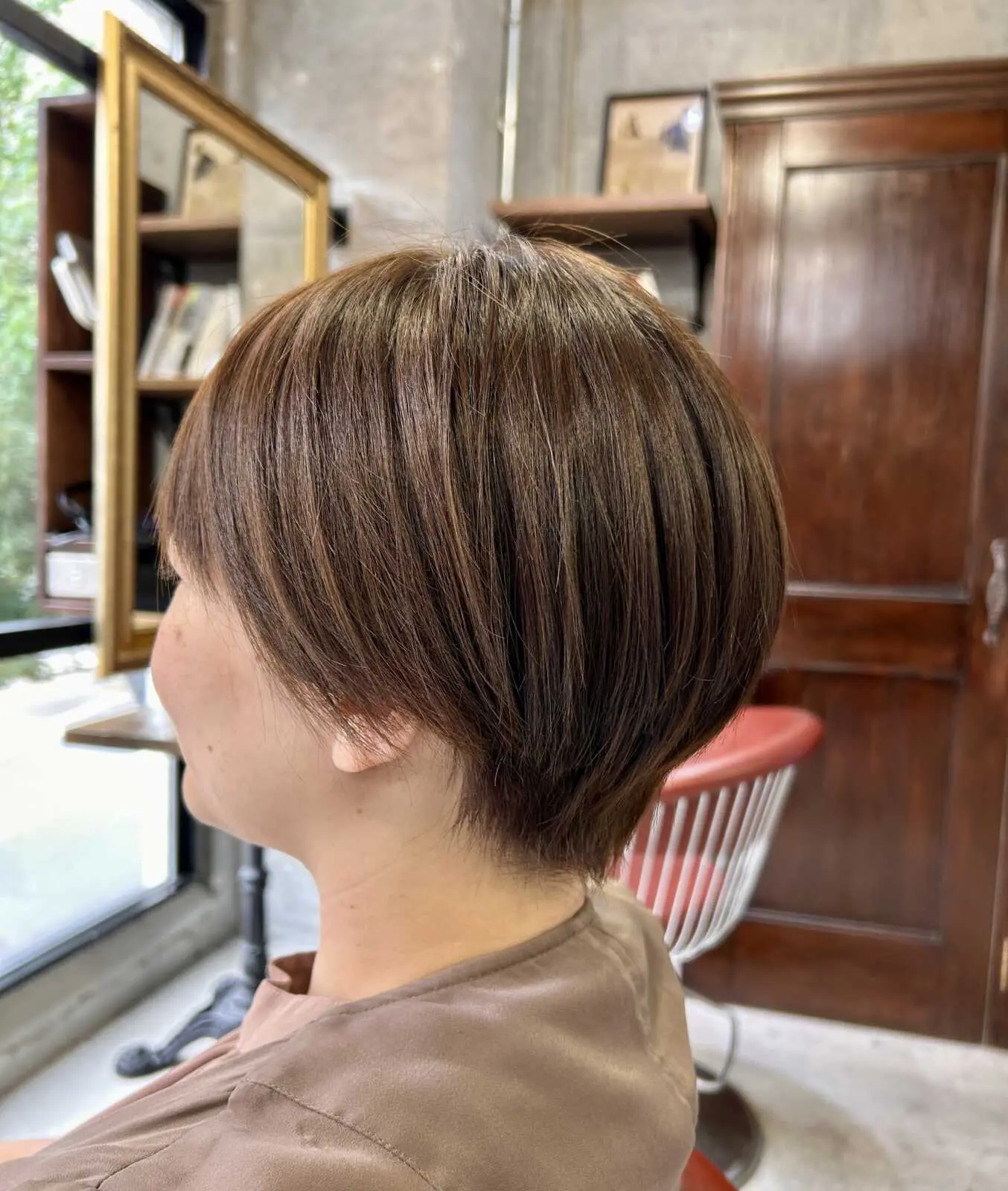 襟足付近中心に軽くしながらサイドにかけて丸みをつけながら重くなり過ぎないようにしっかり質感調整を