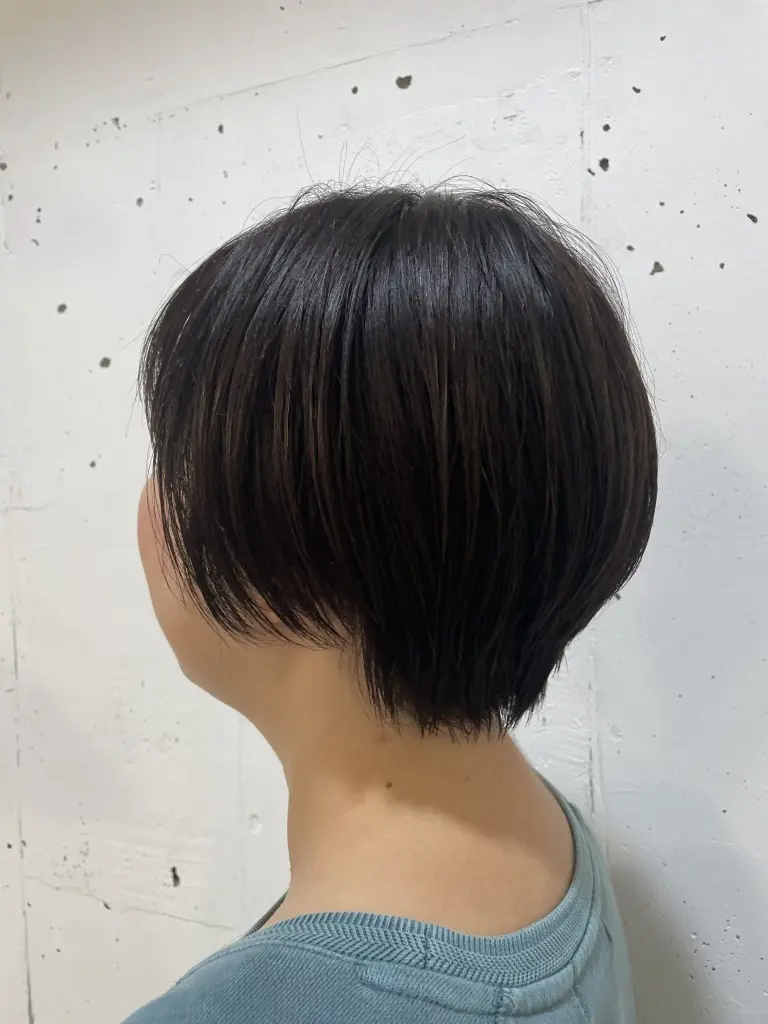短めのボブとショートスタイルの間くらいの長さ 前から見るとボブっぽいですが 横から見るとスッキリしているので重い印象になりづらいです