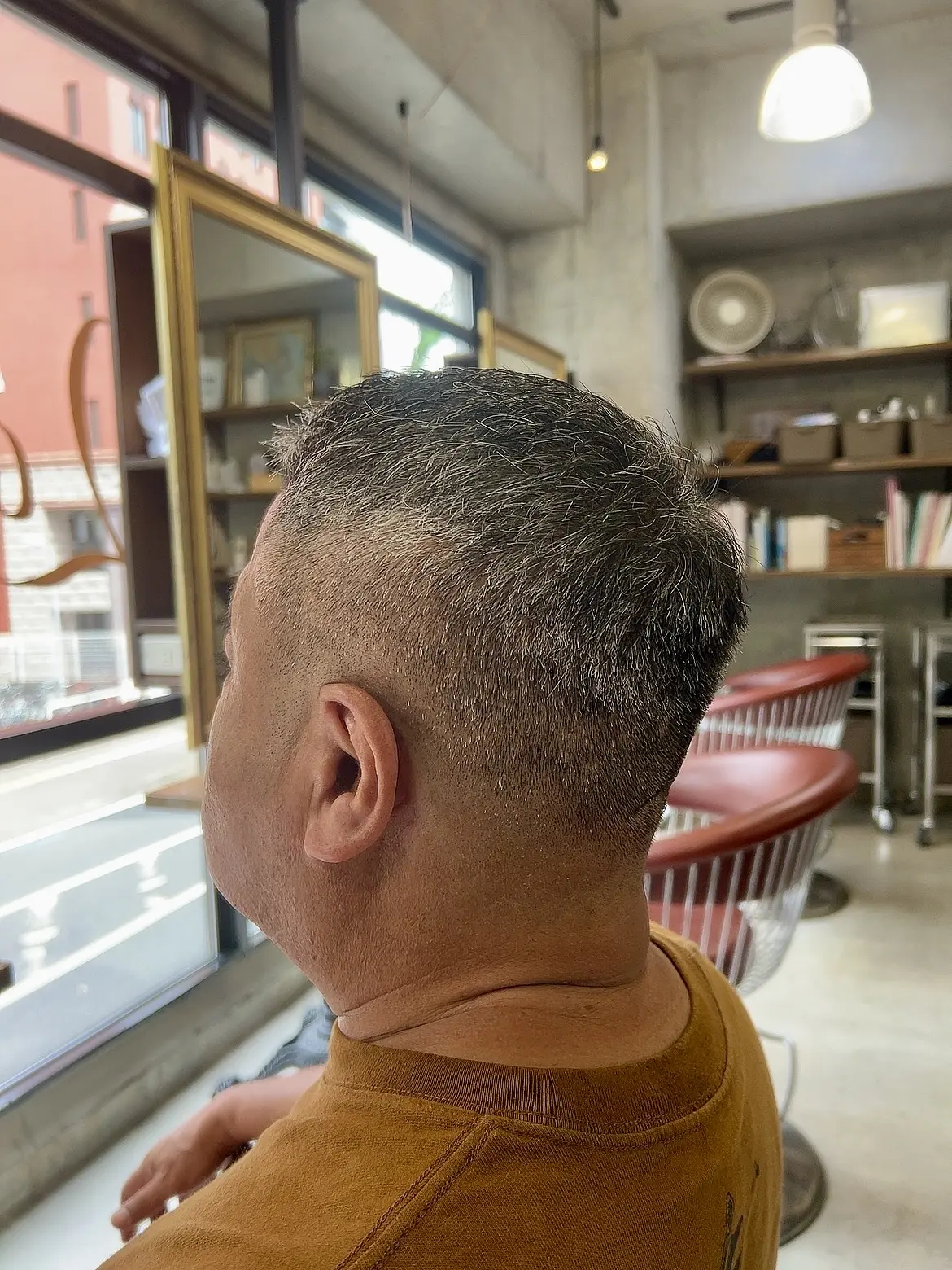 低めのフェードカットは印象もよりスッキリと見せてくれて挑戦しやすいスタイルです