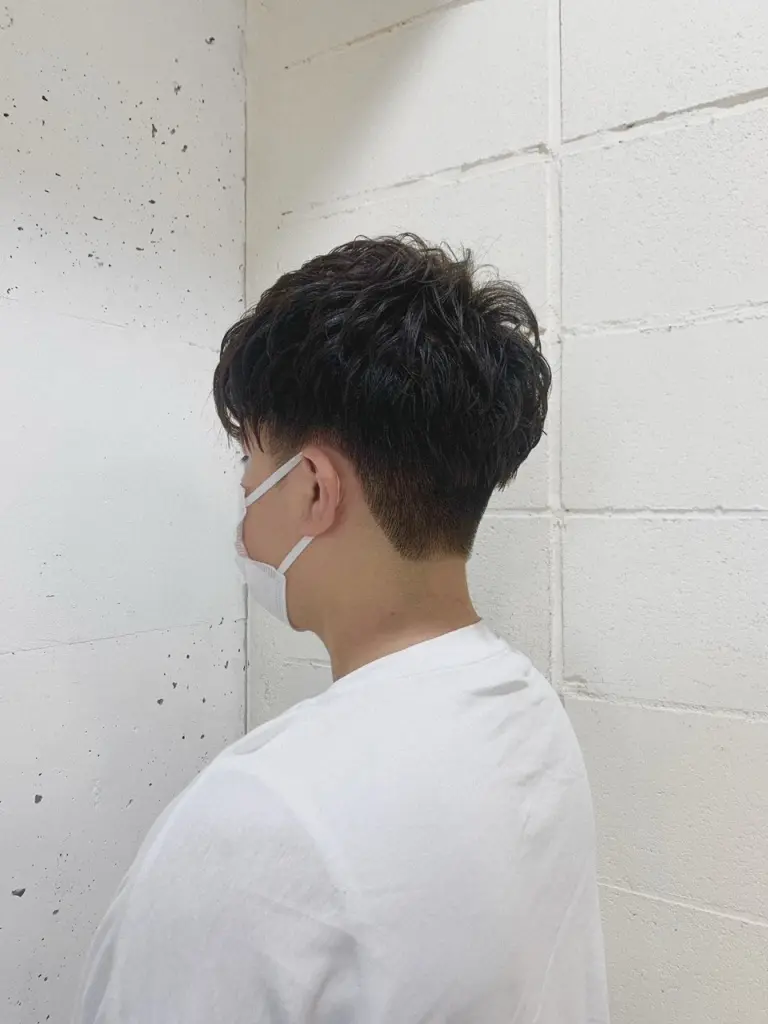 ドライヤーでしっかり寝癖を直し、ワックスを揉みこむと動きのあるパーマスタイルへ!