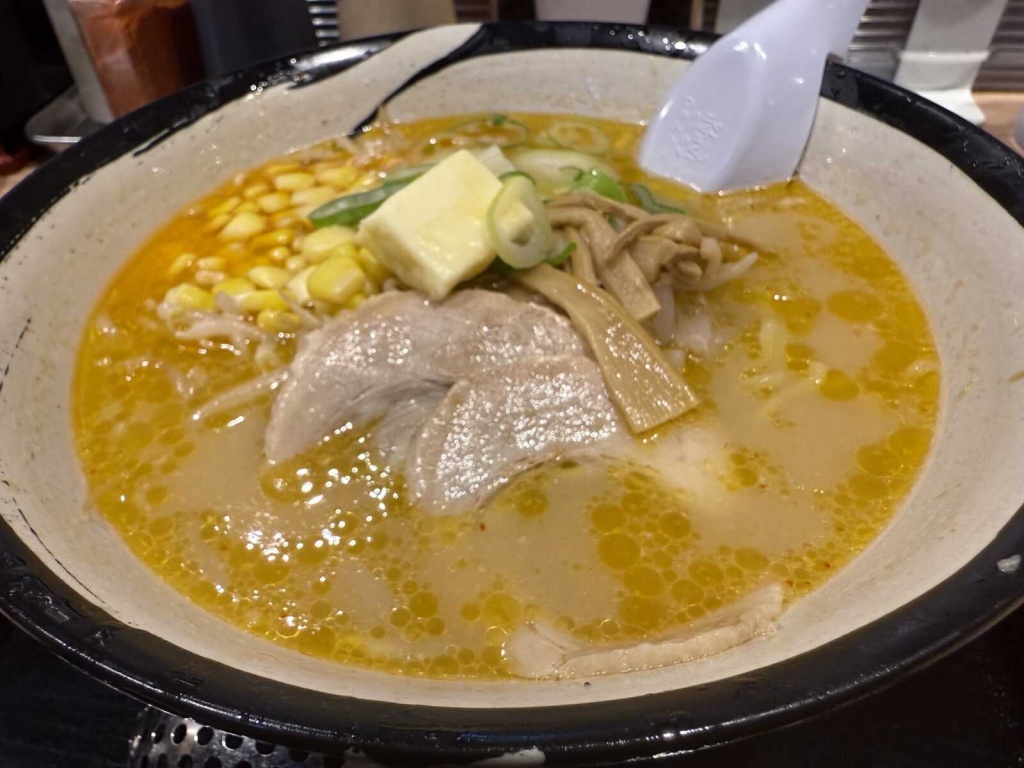 スープは、鶏豚ガラをベースに日高昆布のだしを加えたあっさり味。中でも特製味噌に風味豊かな特製香味油を加えた味噌味の味噌バターラーメン。