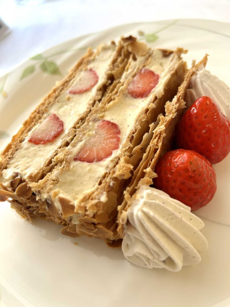 苺のナポレオンパイと紅茶のソーダを